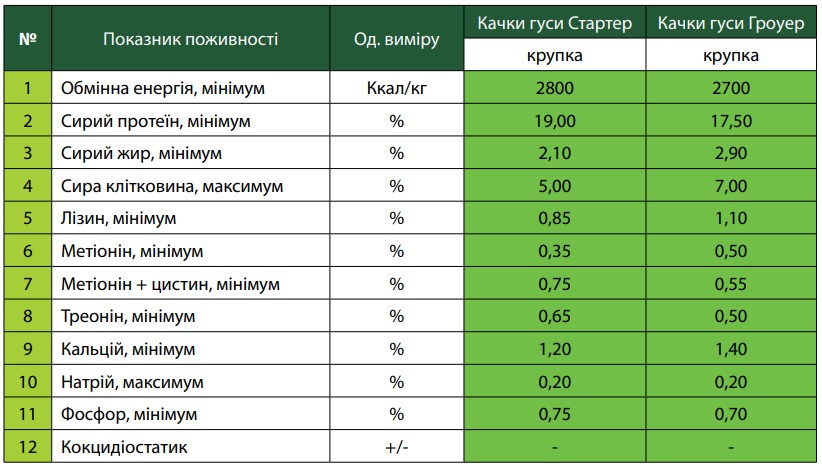ЕНЕРГЕТИЧНА ЦІННІСТЬ ТА ПОКАЗНИКИ ПОЖИВНОСТІ КОРМІВ ГОТОВИХ ДЛЯ КАЧОК ТА ГУСЕЙ ЛІНІЇ «ОПТИМУМ»