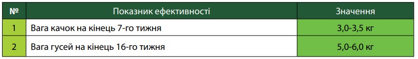 ОРІЄНТОВНІ ПОКАЗНИКИ ЕФЕКТИВНОСТІ ВІДГОДІВЛІ КАЧОК